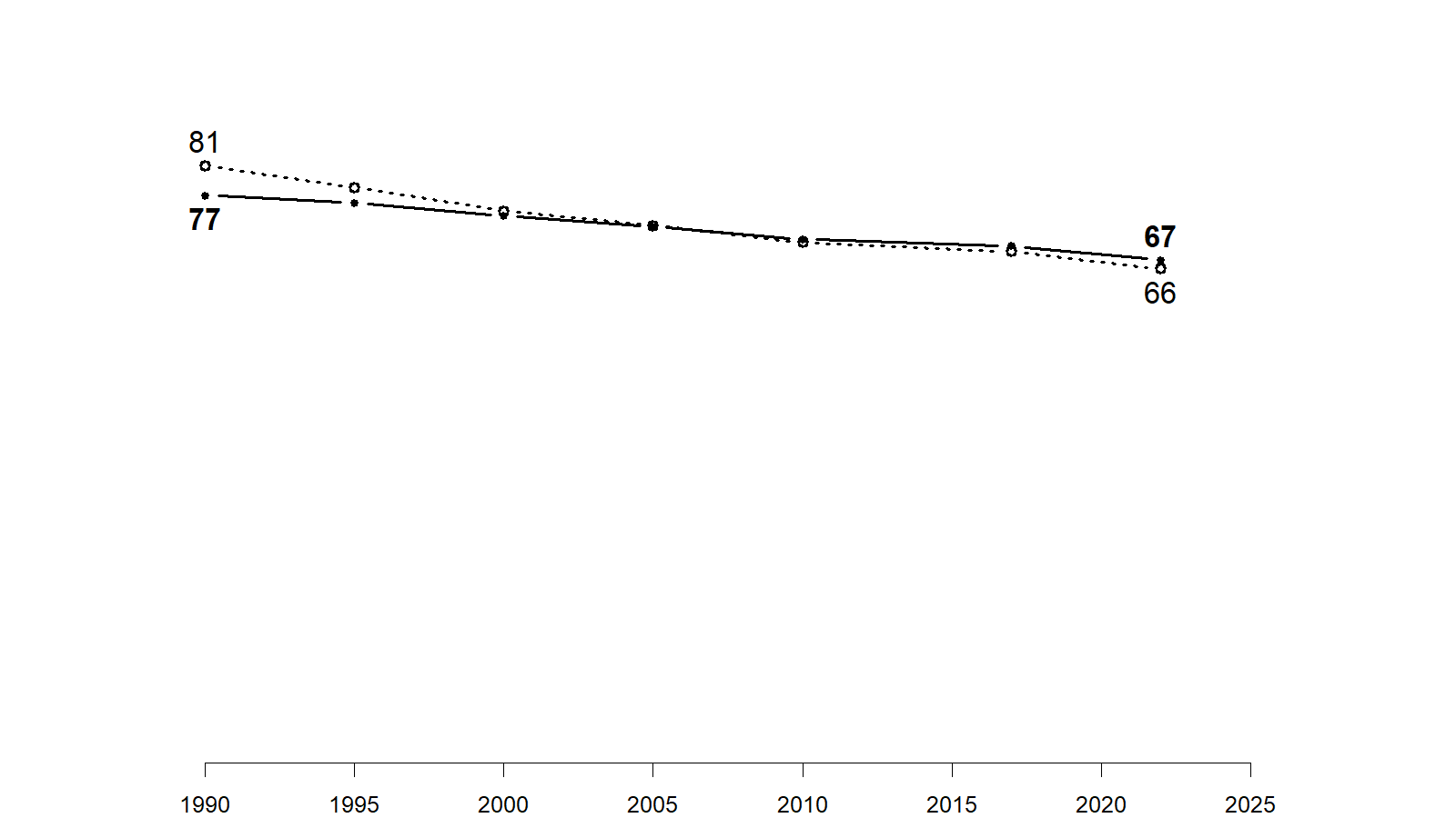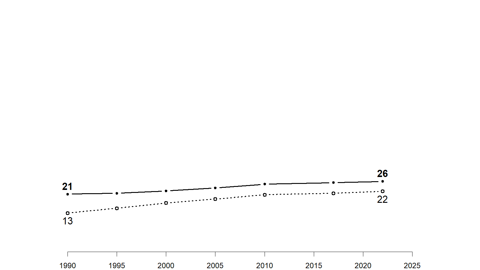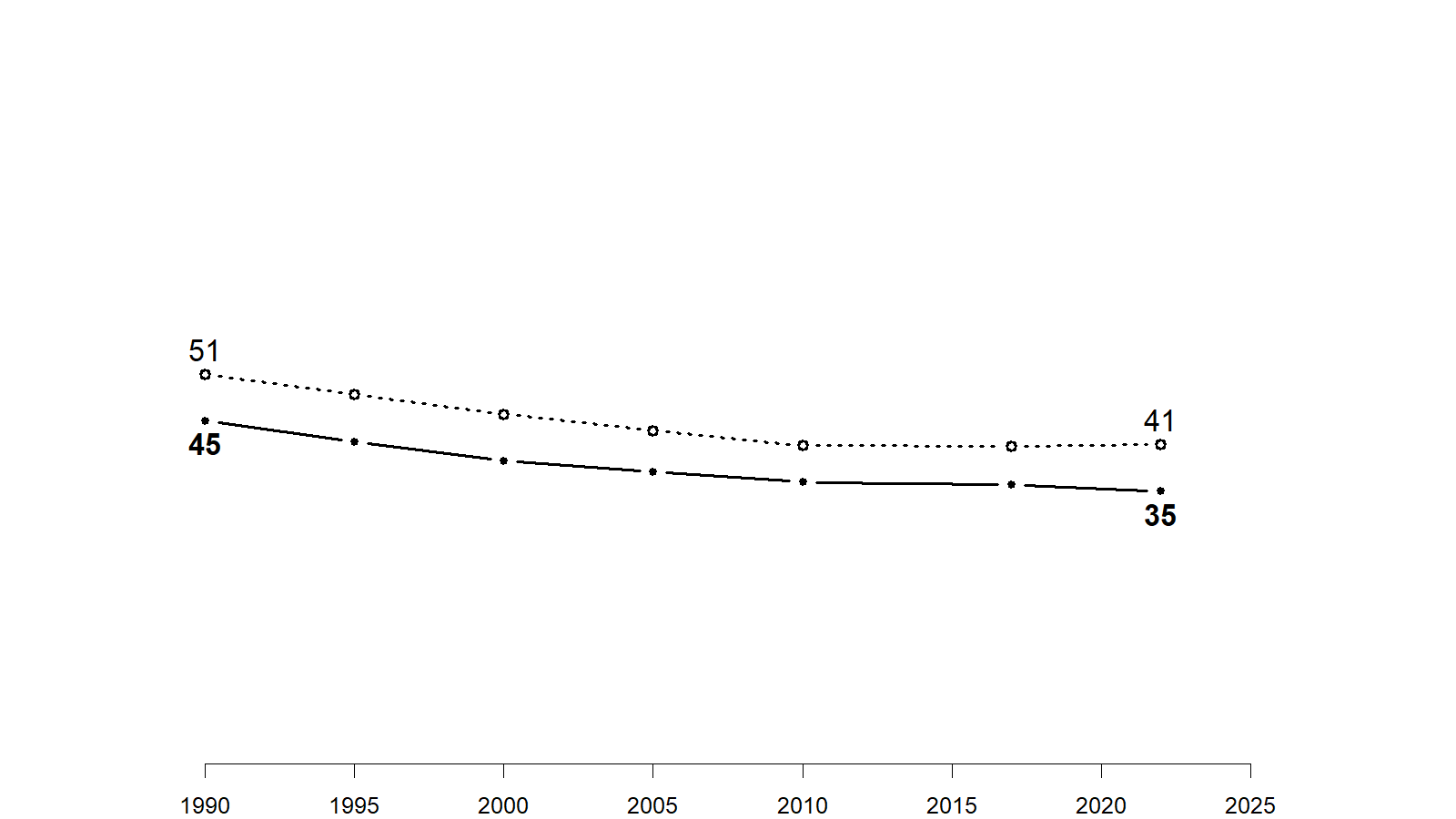 Share of the adult population that is under 40, 1990-2022